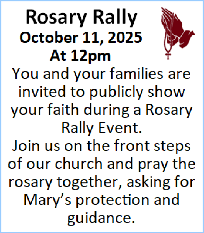 St. Joseph Church will be open on the same days as the Parish Office for private prayer following the 8:30 am Mass until 2:00pm. Enter through the Main Church Door at Route 12, or utilize the accessible entrance near the handicapped parking spaces next to the courtyard on the north side of the Church.